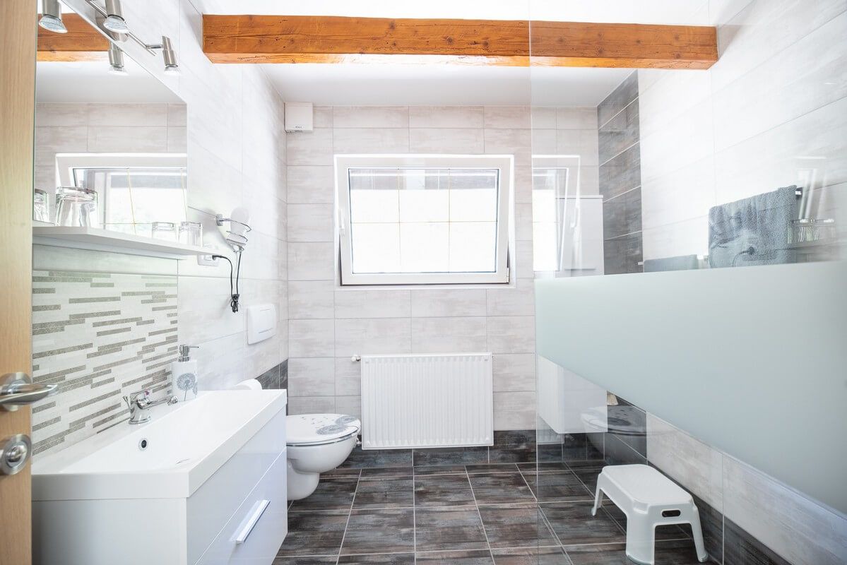 • a bathroom with shower