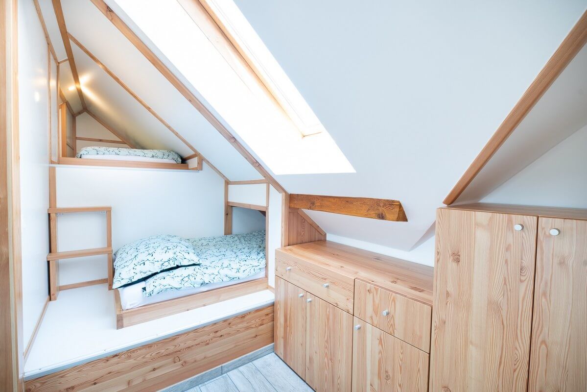 • a double bed and a bunk bed for 2 people (all in one room)