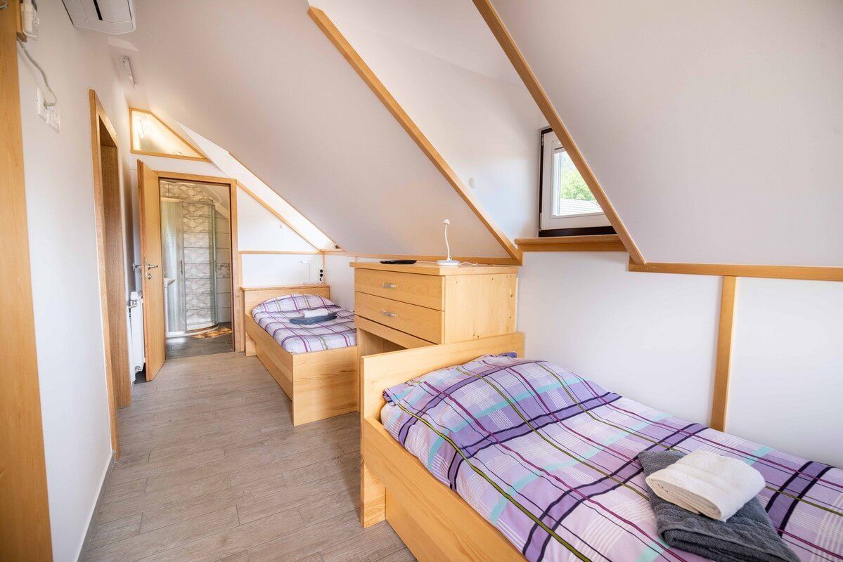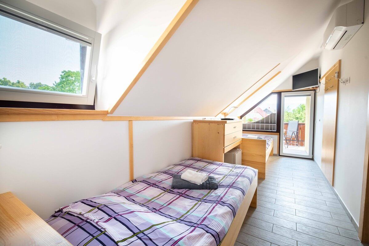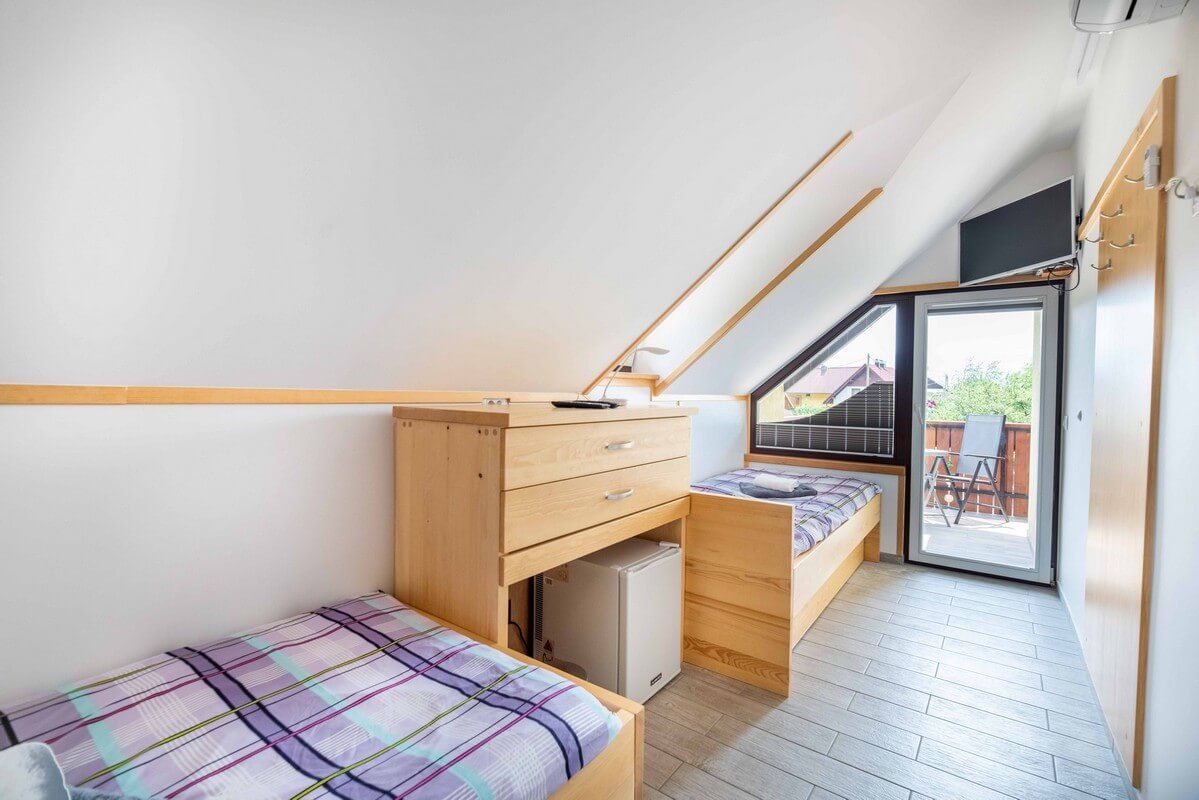 Our bright, air-conditioned room is ideal for travelers, couples or friends looking for a quiet stay close to Bled.