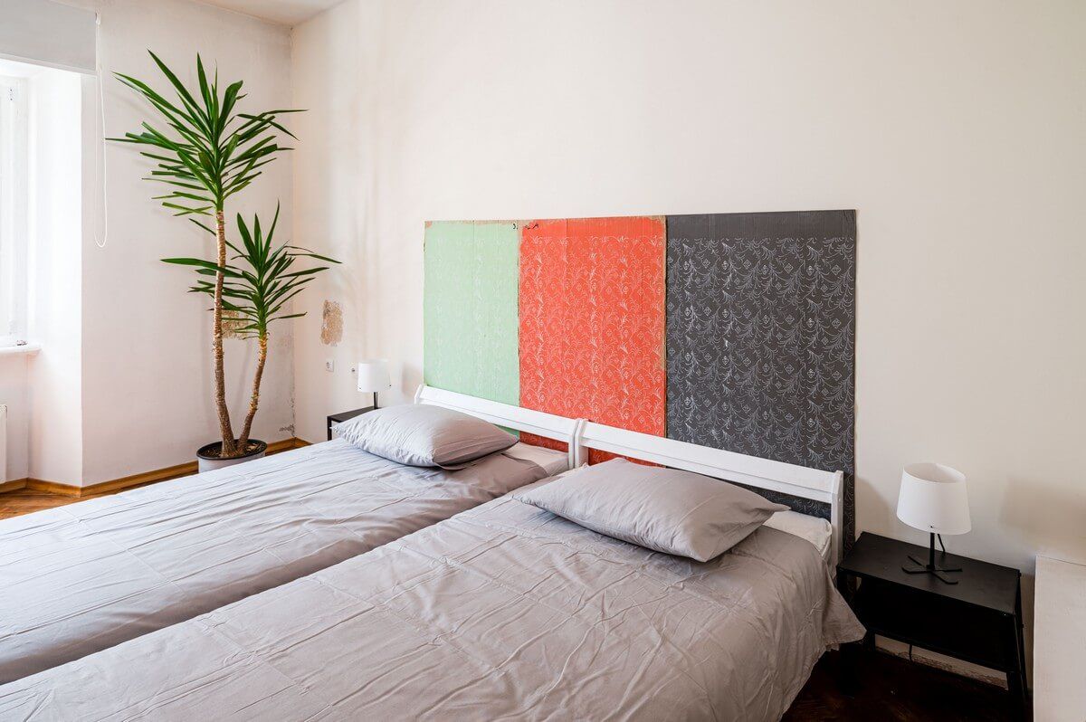 A peaceful room featuring two single beds (can be put together), fresh linens, soft lighting and thoughtfully simple details. Ideal for guests seeking comfort with a creative touch.