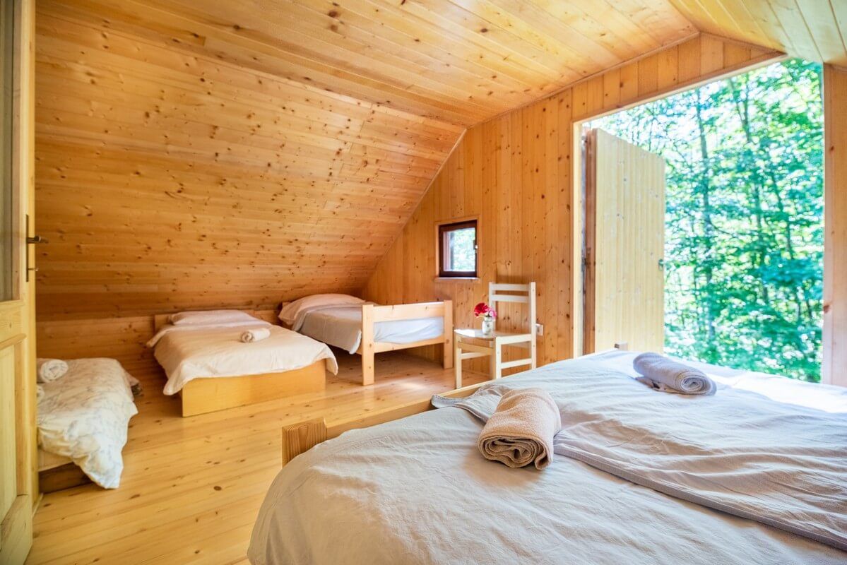 Dobrodošli v Miha Lodge, odmaknjeni in mirni gorski koči sredi gozda, z veličastnim razgledom na Alpe. Večere lahko preživite ob kurišču, opazujete zvezde in preprosto uživate v tišini. Koča je primerna za posameznike, pare, manjše družine, pa tudi večje skupine do 12 oseb.