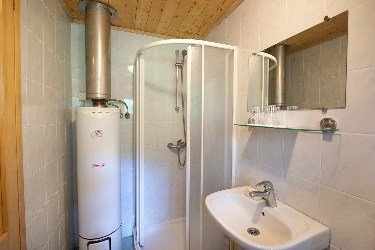 Na voljo je tudi zunanja prha z razgledom, ki čudovito dopolnjuje gorski način bivanja.