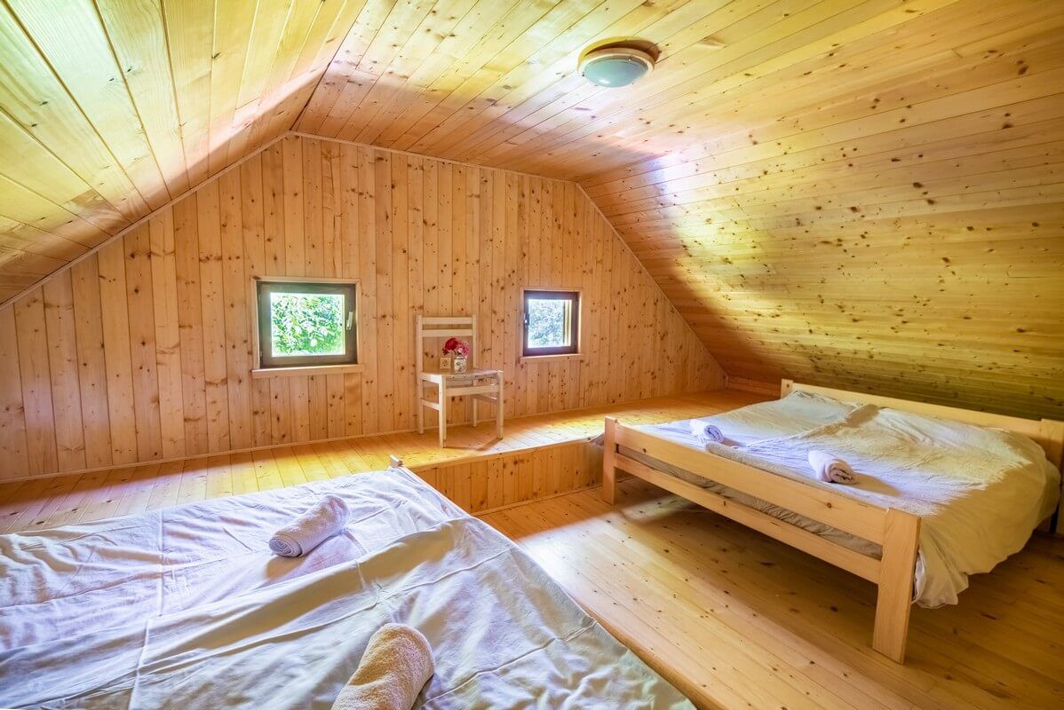 V nadstropju sta dve spalnici: